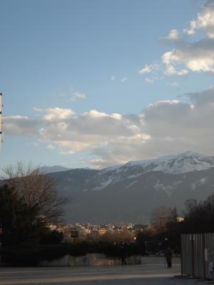 Am Ende des Vitosha-Boulevards ist dann ein riesen Platz, mit einer seltsamen Konstruktion, die wohl noch aus Sovjet-Zeiten stammen muss. Was das sein soll, kann man unmöglich erkennen. Es sieht in etwa so aus, wie eine nicht fertiggestellte Treppe, die in der Luft hängt, inklusive Baugerüst. Auf jeden Fall scheint der Platz ein zentraler Treffpunkt zu sein, was sich heute zwar noch nicht ganz gezeigt hat, da viele Sofioter über die Feiertage aufs Land gefahren sind und einige Geschäfte nicht auf hatten. Und man hat den schönsten Blick aufs Vitosha-Gebirge!! Leider hatte ich meinen Fotoapparat nicht dabei. Aber von einem Punkt des Platzes aus, konnte man direkt durch die Häuser auf diese schneebedeckten Berge schauen und das war einfach grandios. Da wurde mir erst richtig bewusst, wie diese Stadt auf einzigartige Weise Metropole und Naturerlebnis verbindet. Ich freue mich jetzt schon riesig auf den ersten Ausflug dorthin, der allerdings wohl noch etwas warten muss. Erstens ist es dort doch noch etwas zu verschneit für eine Wanderung und zweitens fangen am Donnerstag die Sofioter Filmfestspiele an und ich bekomme wahrscheinlich Besuch aus Ruse zu diesem Anlass. Naja, ich hab ja noch ein bisschen Zeit. Ich freue mich schon sooo auf den Frühling und die tollen Wiesen da oben! Und wenn ich dann erstmal meinen Schlafsack habe, dann kann ich rumreisen soviel ich dazu Zeit habe 
